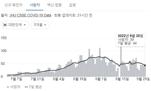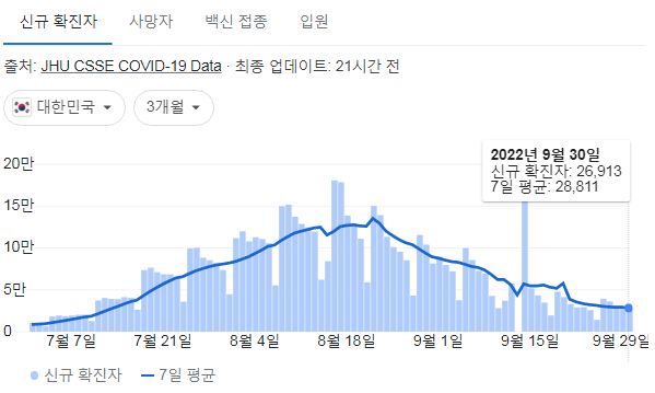 | 코로나19집계(2022.9.30. 0시기준) 확진 +2.8만, 사망 +42명, 중환자병상가동률 20%, 재택치료 17만 (0) | 2022.09.30 |