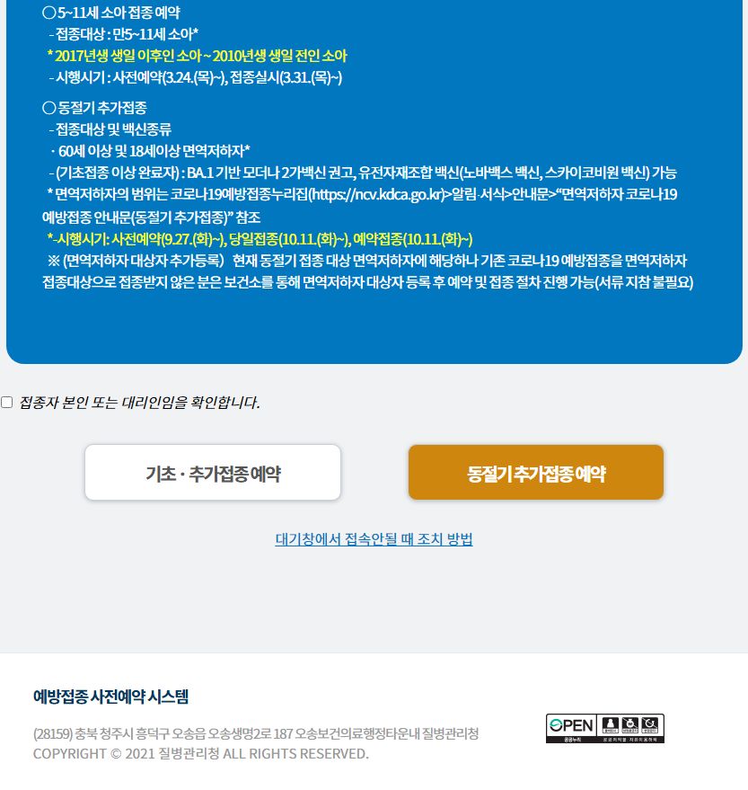 사전예약에 따른 예약접종과 당일접종은 10월 11일(화)부터 시행.