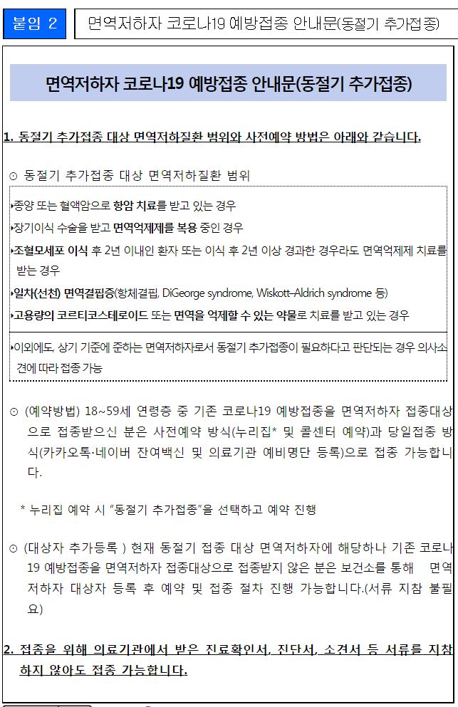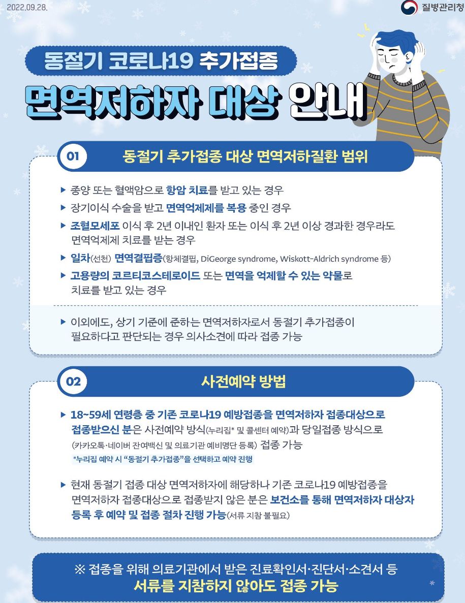 면역저하자 코로나19 예방접종 안내문(동절기 추가접종) (2022.9.28)