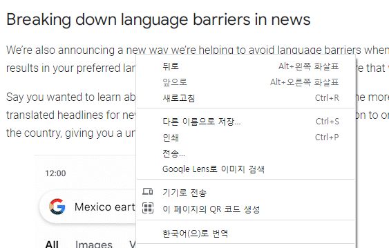 지금은 어째서인지 구글검색결과에 외국어뉴스가 들어가기도 하고, 그냥 검색어를 적당히 넣어 나온 외국어뉴스를 볼 때 문맥메뉴에서 "한국어(으)로 번역"을 눌러 구글 기계번역으로 볼 수도 있습니다. SNS에도 번역기가 들어가기도 하고, 크롬이 아닌 다른 브라우저라면 꼼수를 쓰거나 파파고같이 자체 지원하는 번역기를 쓰죠.