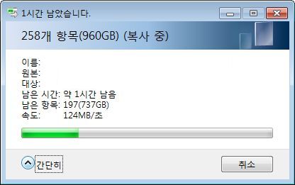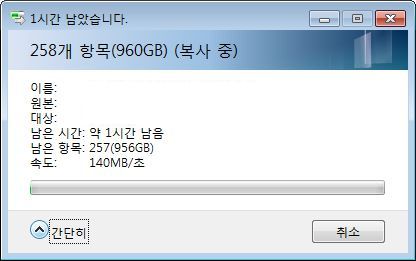 그래서, 약 1TB분량을 복사하는 데 드는 총 시간은 2시간 정도고, 이건 대충 계산해서
