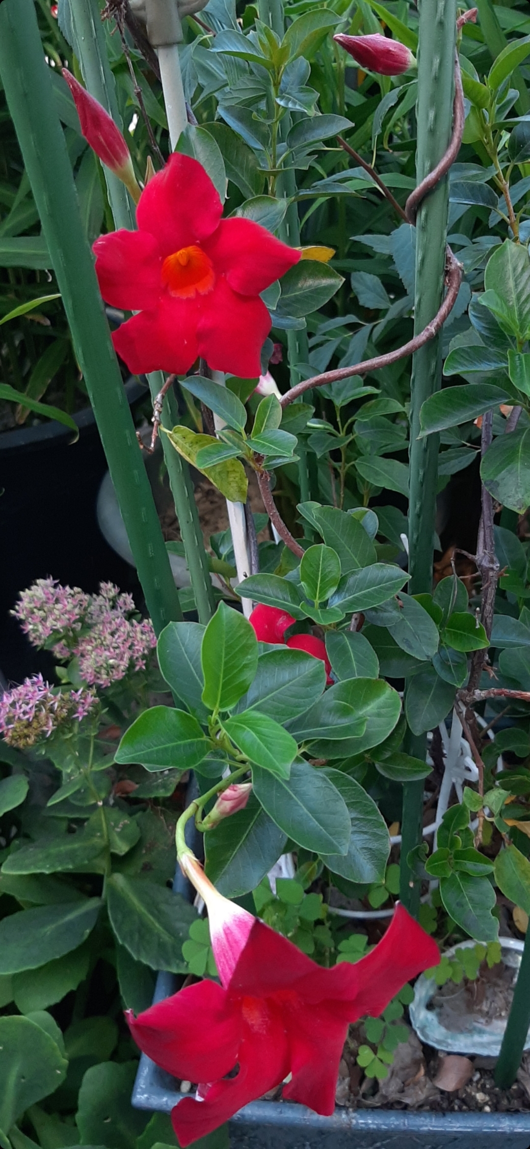 꽃봉오리와 꽃도 나팔꽃을 연상하게 하는 모양. 줄기 밑둥은 목질같이 보여서, 화분을 겨울에 집안에 들여놓으면 안 죽고 아듬해 그 줄기에서 클 것 같이 생겼습니다.
