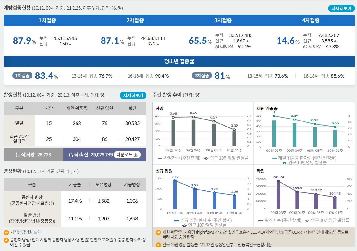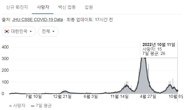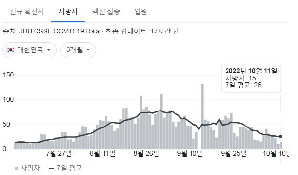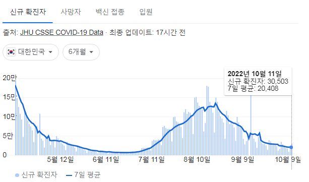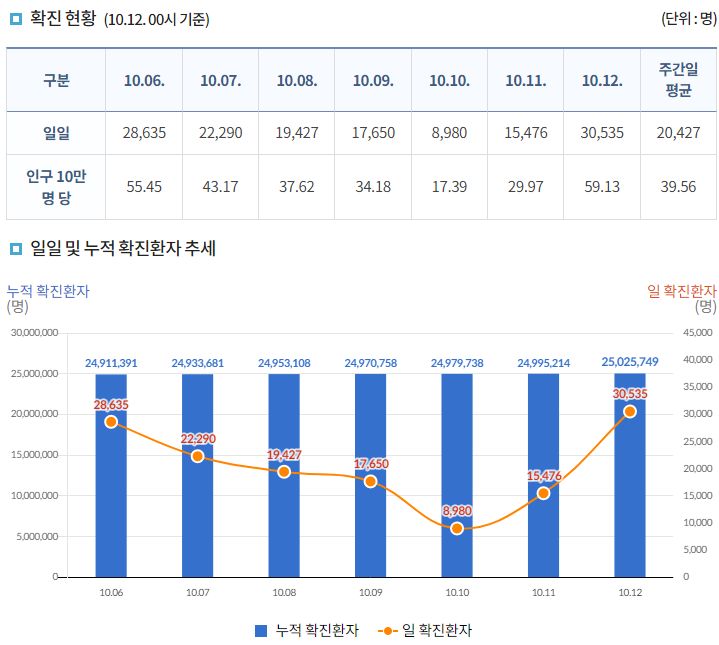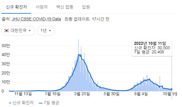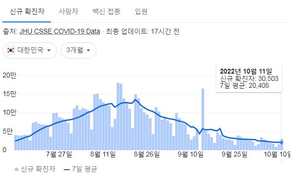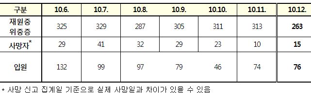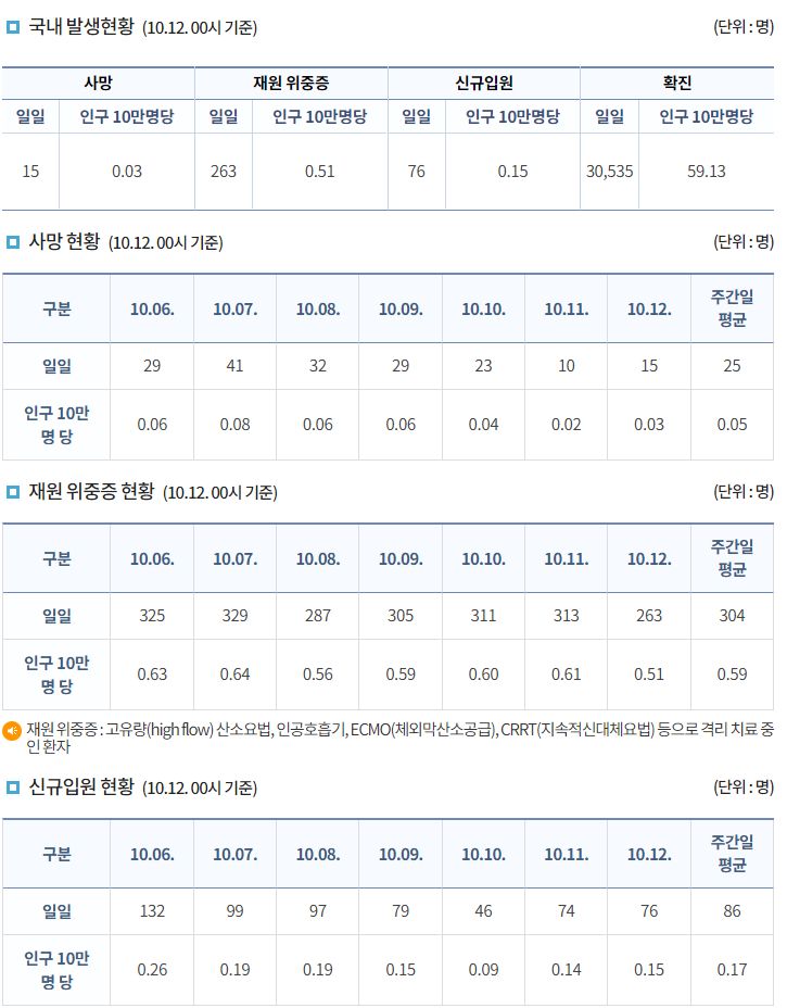 코로나19집계(2022.10.12. 0시기준) 확진 +3.1만, 사망 +15명, 중환자병상가동률 17%, 재택치료 11만 본문