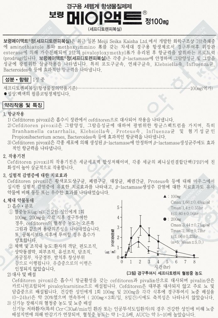 ㅡ 제품명: 보령메이액트정100밀리그램(세프디토렌피복실)