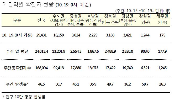 | 코로나19(2022.10.19) 코로나19 주간 발생 동향 및 위험도 평가:낮음 (0) | 2022.10.19 |