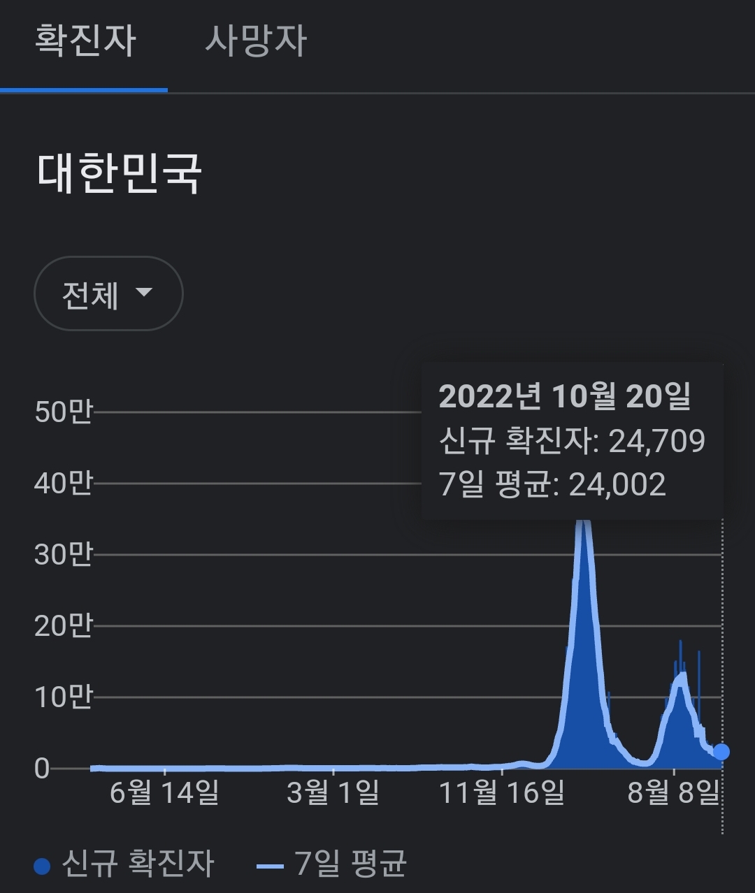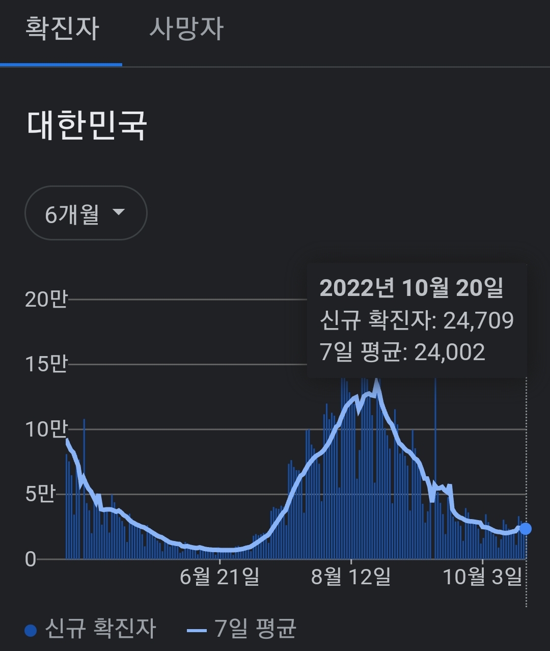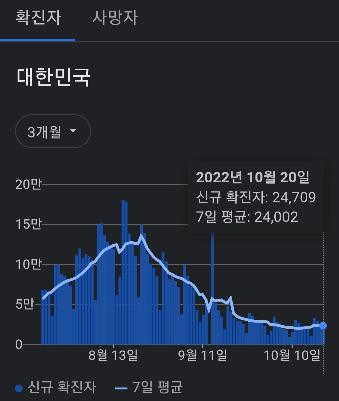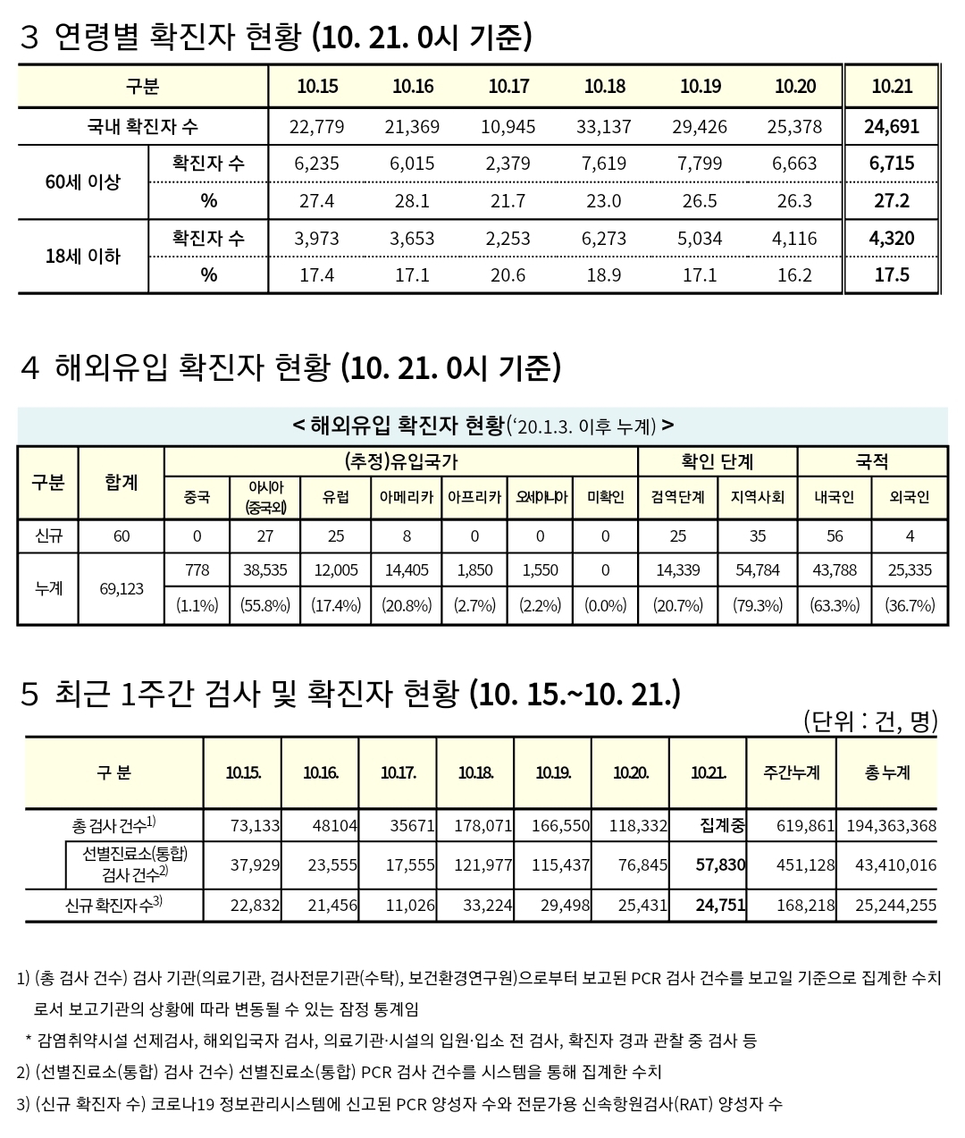 코로나19집계(2022.10.21. 0시기준) 확진 +2.5만, 사망 +30명, 중환자병상가동률 18%, 재택치료 14만 본문
