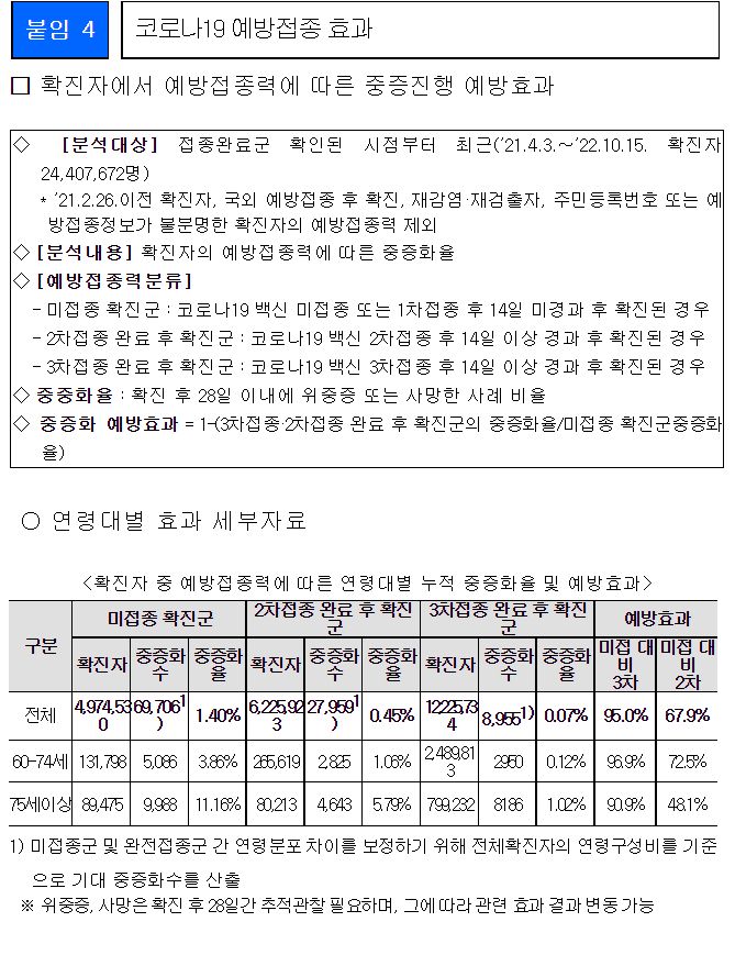 예방접종의 감염, 중증화, 사망 예방/방어 효과 분석