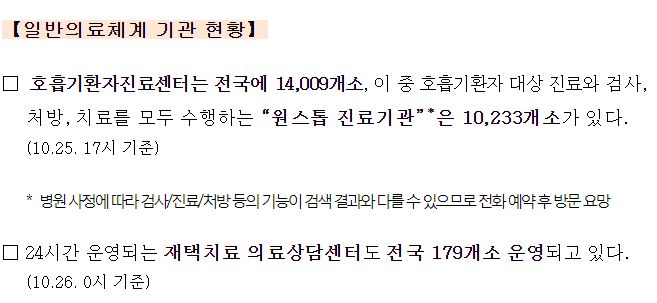 코로나바이러스감염증-19 정식 누리집으로 호흡기환자진료센터, 국내발생현황, 국외발생현황, 시도별발생현황, 확진시 조치안내, 국민‧보건의료인용 핵심정보안내, 공지사항