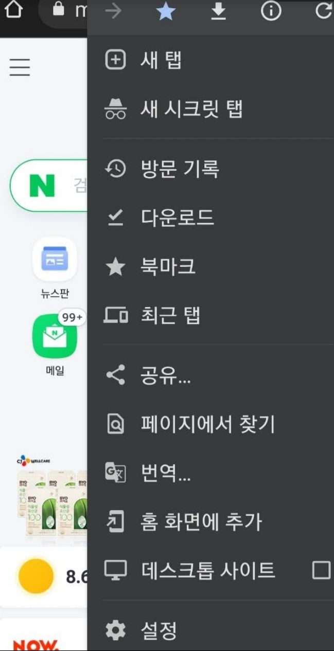 모바일 크롬 브라우저 개선희망점: 지금 탭 닫기, 인쇄 본문