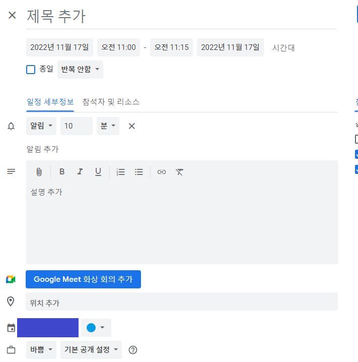 구글 캘린더 일정작성화면 개선희망점:아이템 순서 본문