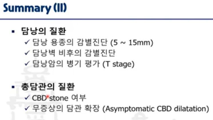 ㅡ 췌장쪽 질환, 담낭쪽 질환, 담도(담관)질환에 유용한 점 등. 각각을 설명하는 내용이 영상의 대부분입니다.