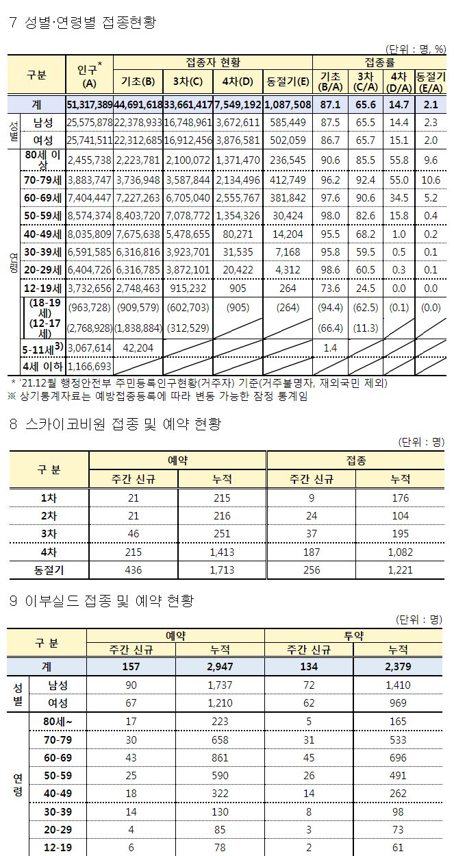 코로나19집계(2022.11.3. 0시기준): 확진 +4.7만, 사망 +41명, 중환자병상가동률 26%/:/ 주간 예방접종 집계 본문