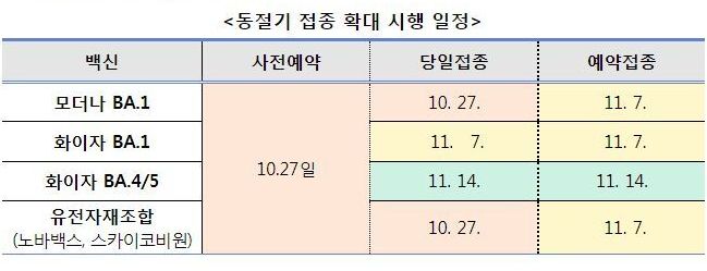 코로나19 예방접종 사전예약 사이트 https://ncvr.kdca.go.kr/cobk/index.html 예방접종 사전예약 시스템 예방접종 사전예약 시스템 ncvr.kdca.go.kr 코로나19예방접종 안내 포스터(2022.11.3일 기준 최신) 11월 3일
