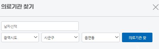 주사맞을 의료기관은, 날짜를 고르고, 지역을 고르고 나서