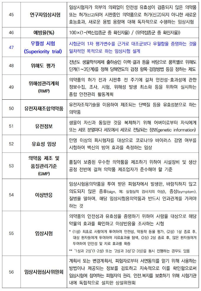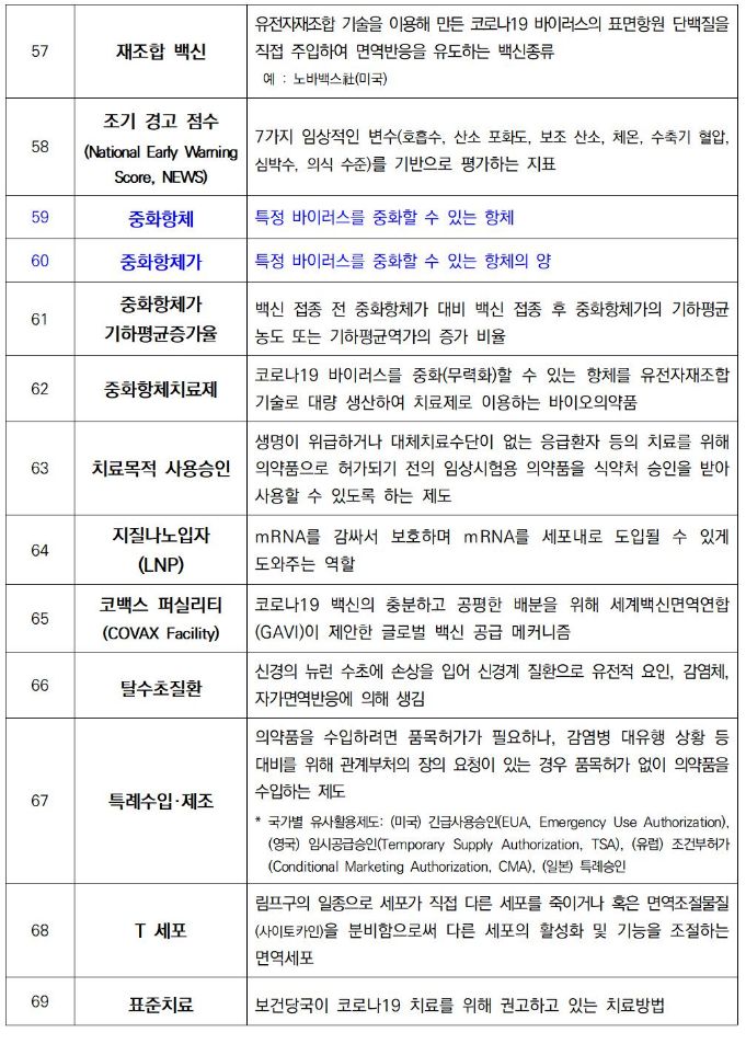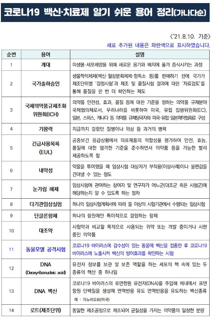 코로나19 백신, 치료제, 의학용어 정리 (식약처) 본문