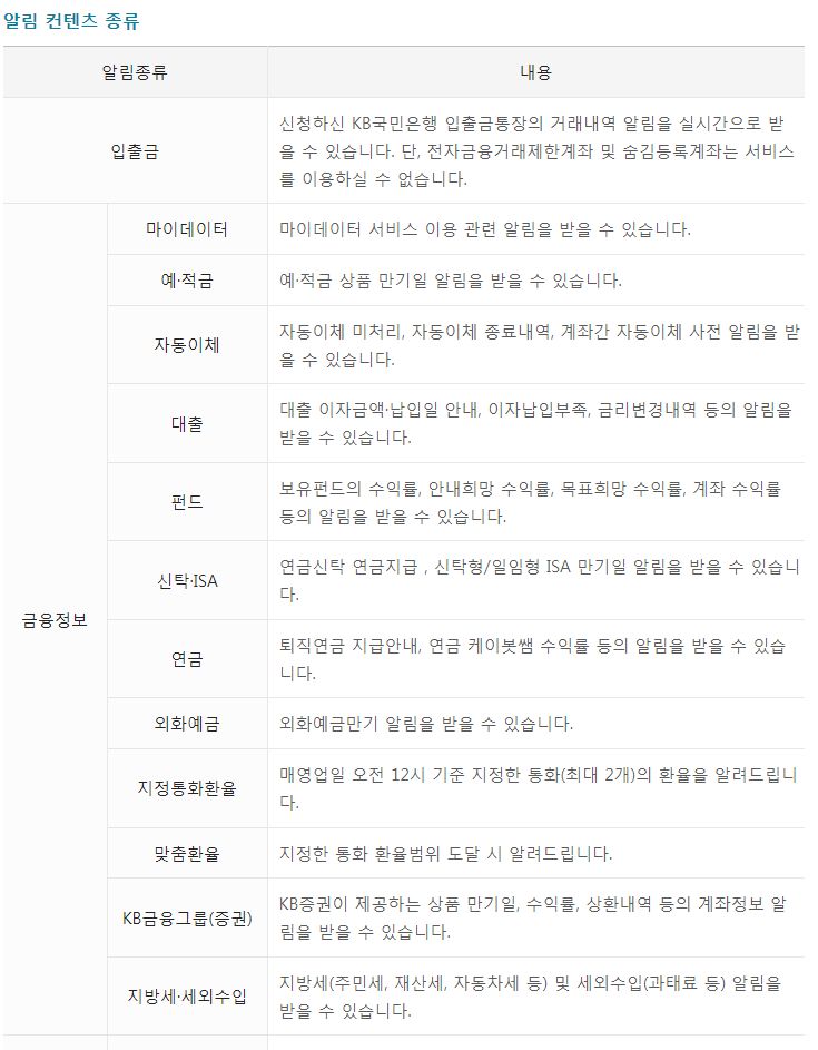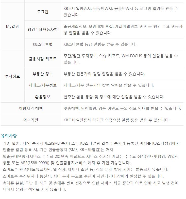 만약 스마트폰에 KB스타뱅킹앱을 깔고 거기서 앱알림서비스를 신청했다면, SMS나 FAX알림서비스는 신청되지 않습니다.