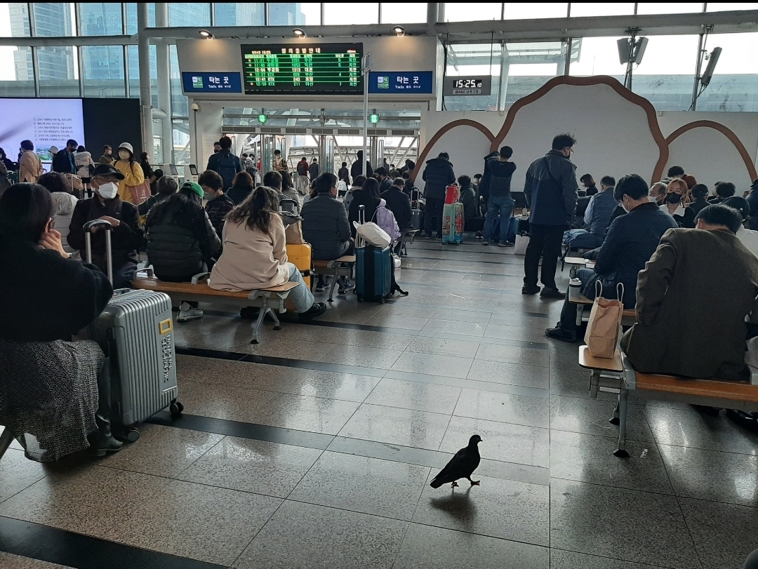 한 가지 엄청 열받는 게, 코레일은 오후 느지막이 될 때까지 지연문자를 안 보냈습니다. 코레일 앱에도 지연표시가 안 떴고. 그래서 예약한 사람들은 조정된 출발지와 출발시간을 고지하는 안내문자메시지만 믿고, 그 시간까지 오면 탈 수 있을 줄 아니 역으로 계속 몰려들었죠. 그래서 역 맞이방이 장사진.. 막상 역에 들어오니 구내방송으로, "열차가 지연중이니 바쁘신 분들은 버스나 다른 교통편을 이용하세요"라니.. 저희가 탈 열차는 그때 이미 몇 시간 연발 확정. 그럼 그 내용을 문자를 날리라고!!