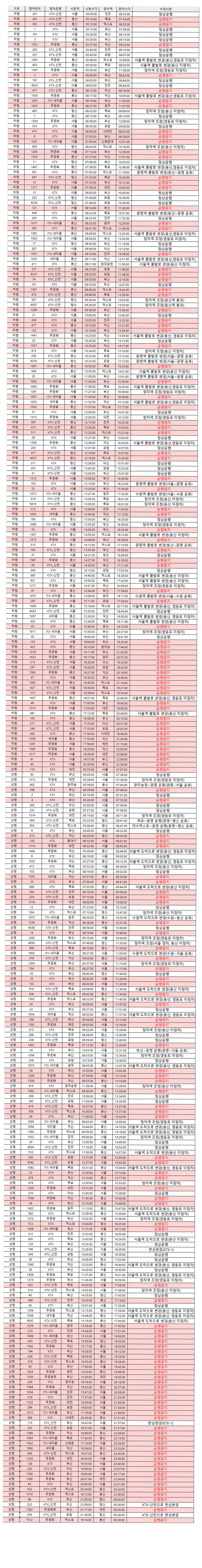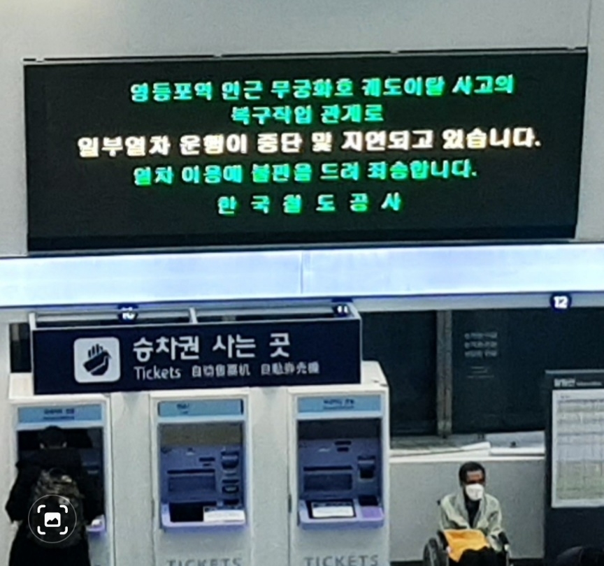 ps. 결국 한 5시간쯤 지연출발했는데, 그때쯤에는 용산역과 영등포역에도 선 걸 보면 큰 공사는 끝났던 모양입니다. 어찌어찌 서울탈출성공.