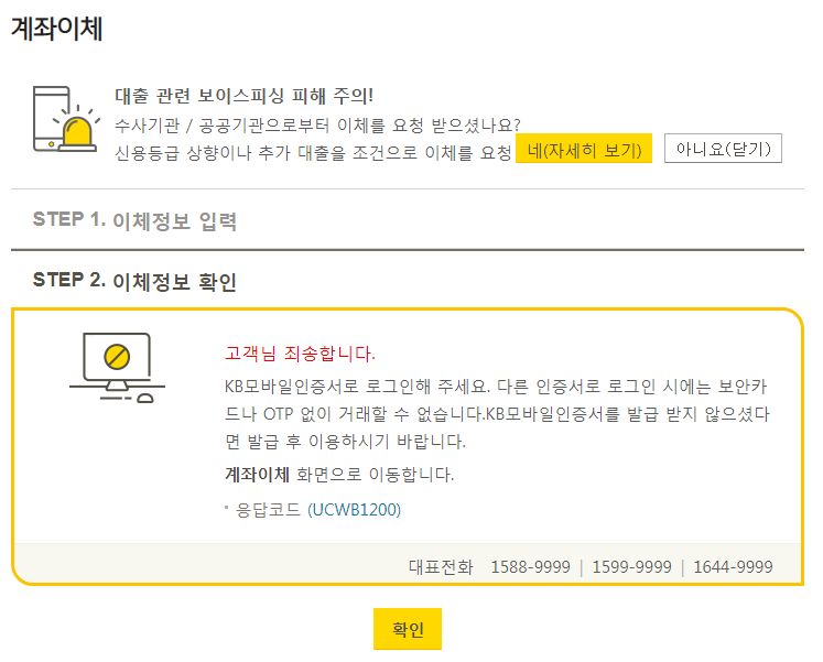 ※ KB스타뱅킹에서 일처리할 때 뭔가 잘 안 될 때 뜨는 응답코드(UCWB뭐뭐뭐뭐)는 여러가지가 있는데,