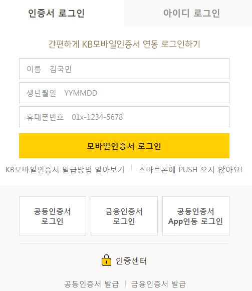 KB모바일인증서로 로그인(전화기에 깔린 KB스타뱅킹 앱을 띄워 뭐뭐를 누르고 인증합니다)하면, 조회화면까지는 로그인이 되고, 송금 등 금융거래를 하게 되면 그 거래의 OTP나 보안카드를 쓸 단계에서 KB모바일인증서 인증을 다시 합니다.