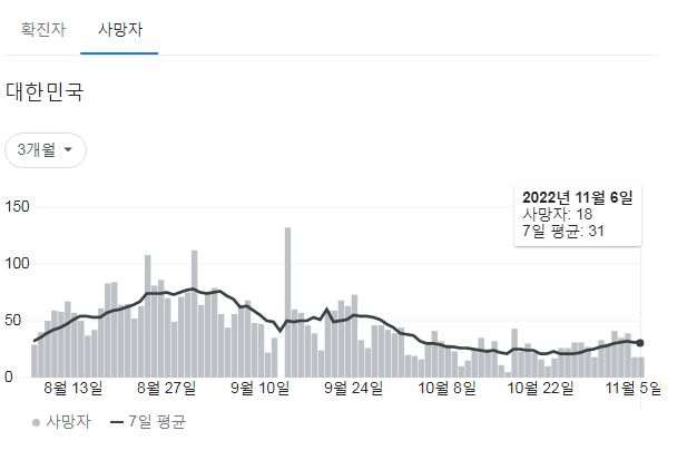 코로나19집계(2022.11.6. 0시기준) 확진 +3.7만, 사망 +18명, 위중증병상가동률 26% (0) | 2022.11.06 |