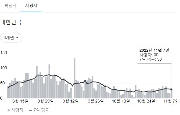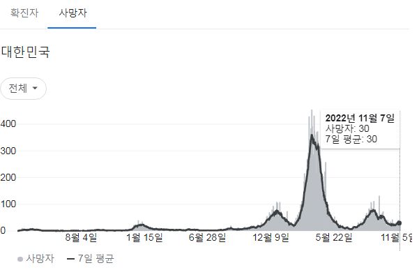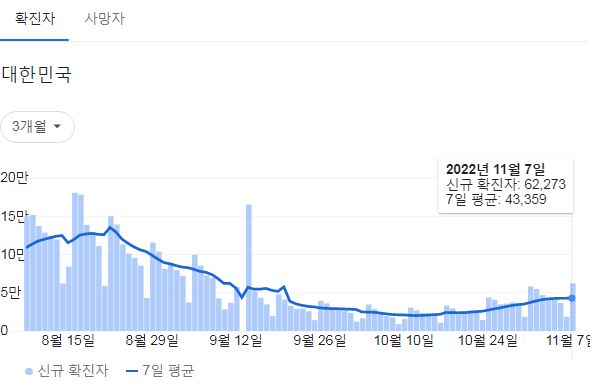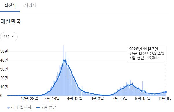 미처 갈무리를 못해서 질병청 홈화면은 9일자를 사용합니다. 구글그래프는 8일자기준이 맞습니다.