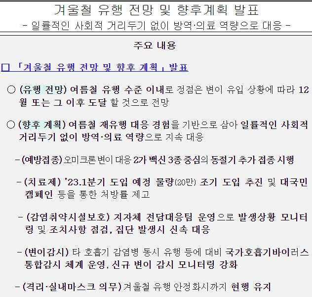 코로나19(2022.11.9) 겨울철 유행 전망 및 향후 계획, 동절기 예방접종 맞으세요!!!!!★★★★★ 본문