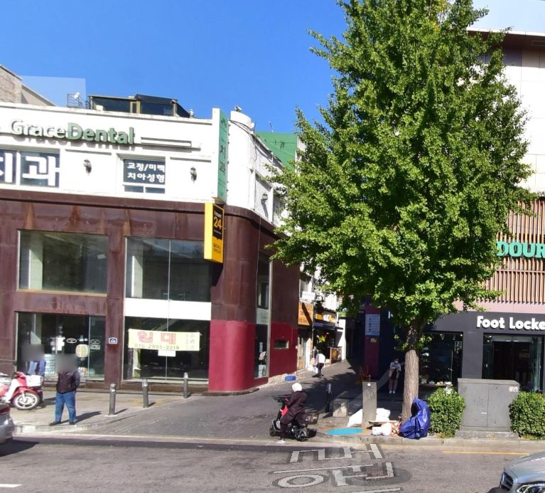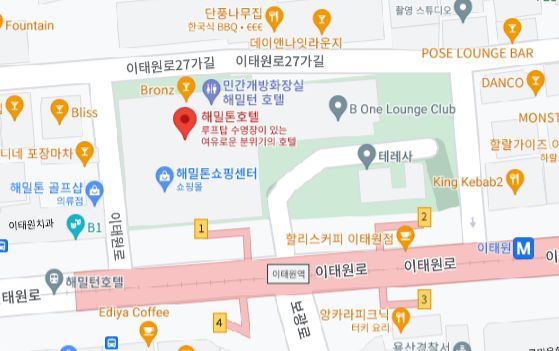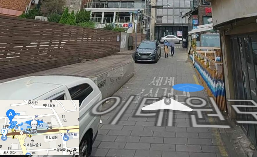 카카오맵로드뷰와 네이버의 거리뷰가 보여주는 해밀톤호텔 왼쪽 길(분홍벽이 있는 골목).