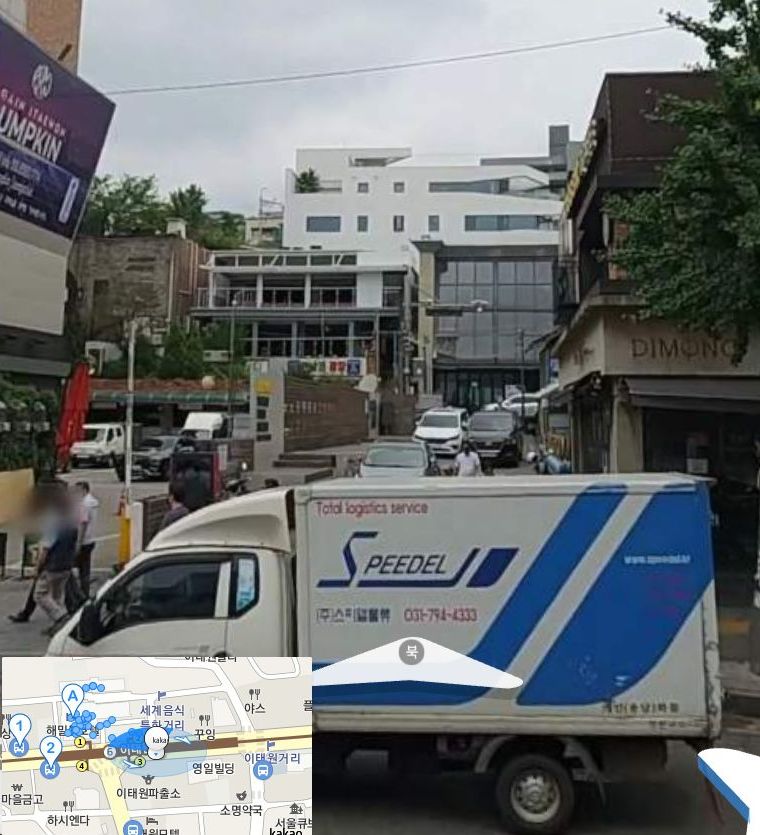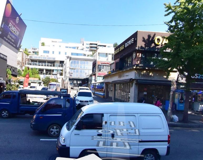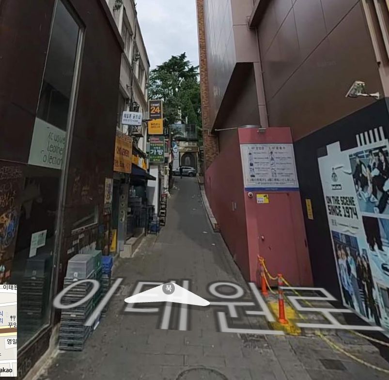 하지만, 네이버지도로 보는 해밀톤호텔. 사고난 왼쪽길이 훨씬 좁게 그려져있습니다. 원래는 세계음식거리의 길과 해밀턴호텔 좌우측 길은 모두 비슷한 폭이어야 했던 모양입니다. 하지만 문제의 호텔이 불법증축을 하는 바람에, 이태원역을 향하는 면을 제외한 나머지 삼면은 모두 도로경계를 침범한 게 아닌가싶은데요. 일단 사고난 왼쪽길과 세계음식거리쪽(27가길)양옆은 확정이고, 오른쪽길도 아래 사진을 보면 도로가 묘하게 좁아져있습니다.