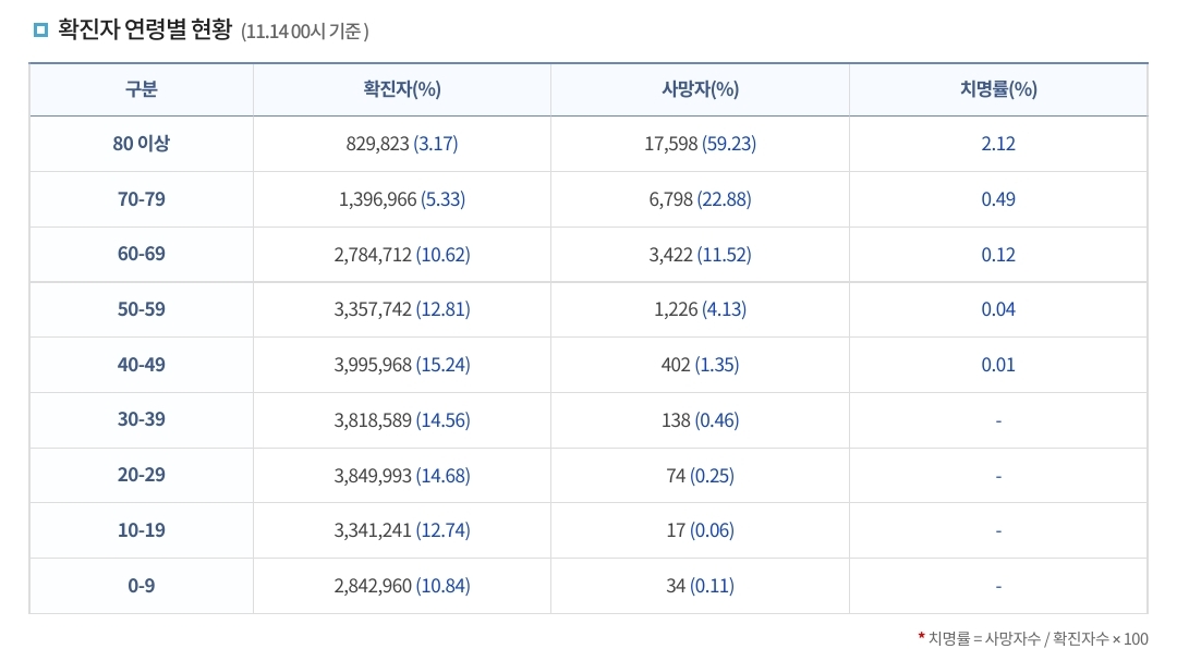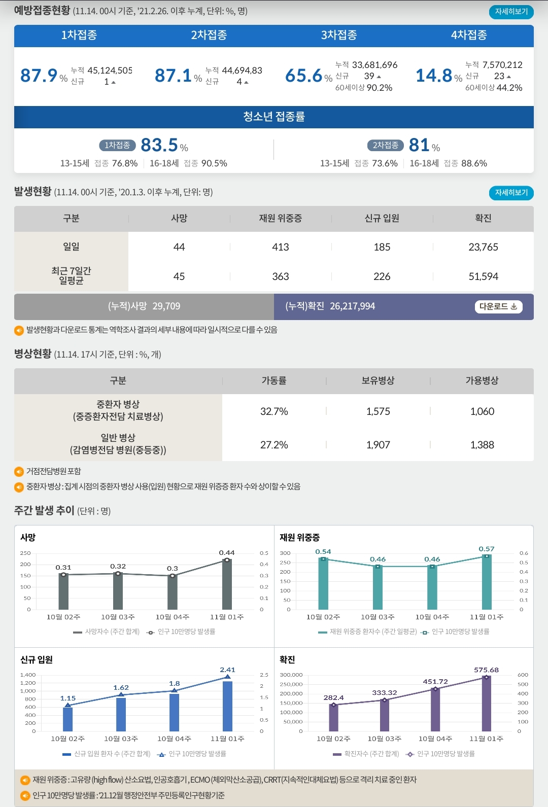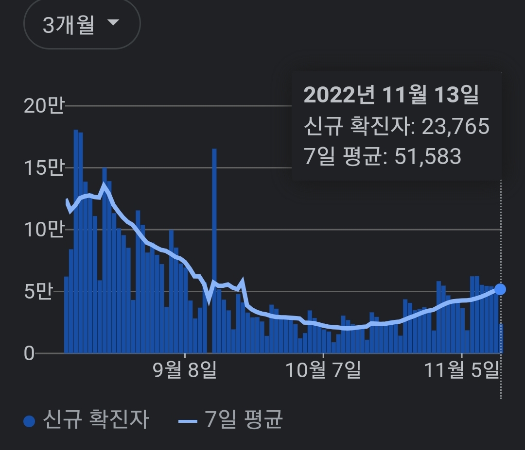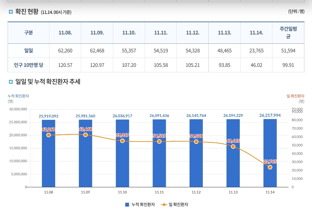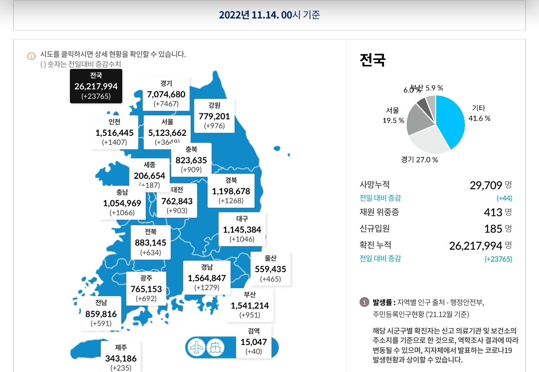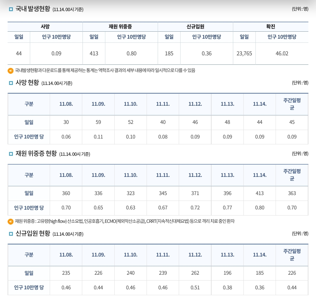 코로나19집계(2022.11.14) 확진 +2.4만, 사망 +44명, 중환자병상가동률 33% 본문