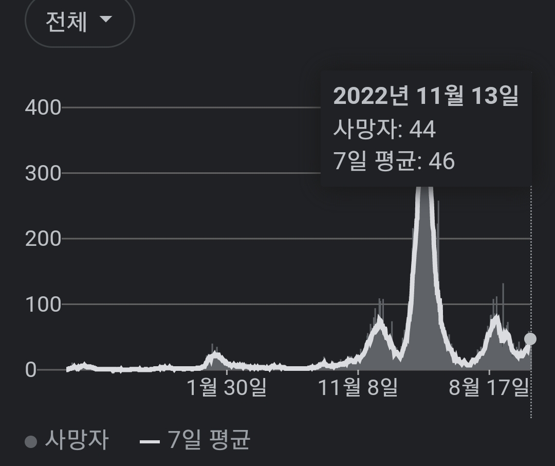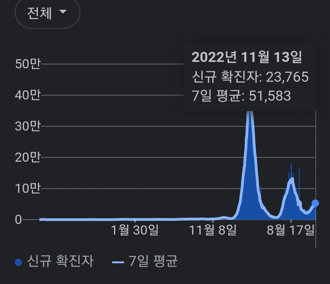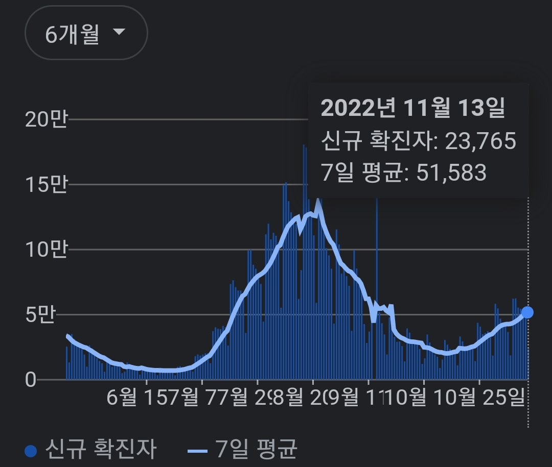 | 코로나19집계(2022.11.13. 0시기준) 확진 +4.8만, 사망 +48명, 중환자병상가동률 32% (0) | 2022.11.13 |