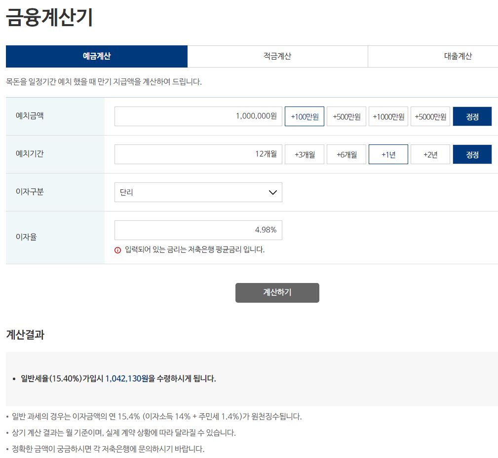 저축은행중앙회 금융계산기: 예금, 적금, 대출