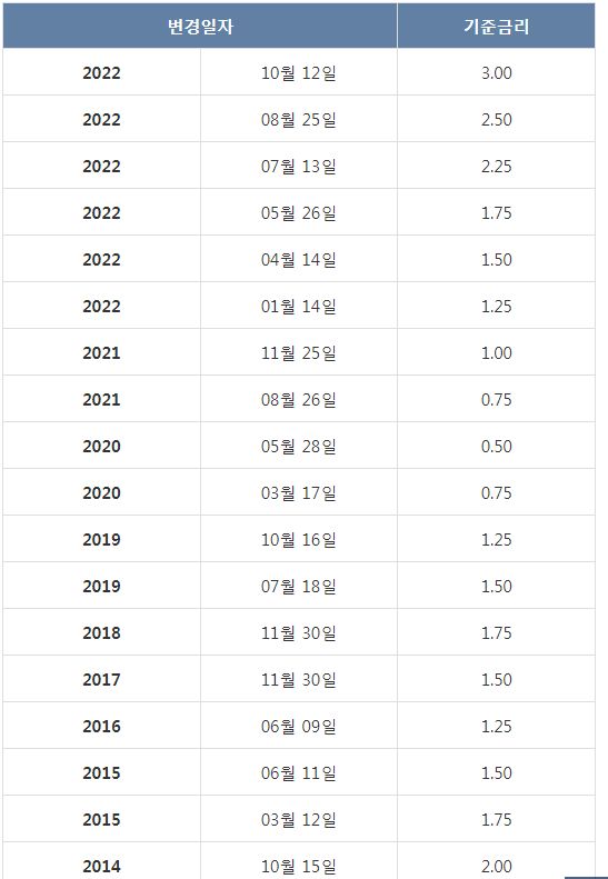 | 한국은행 기준금리 추이(목록) | 통화정책방향 | 통화정책 | 한국은행 홈페이지