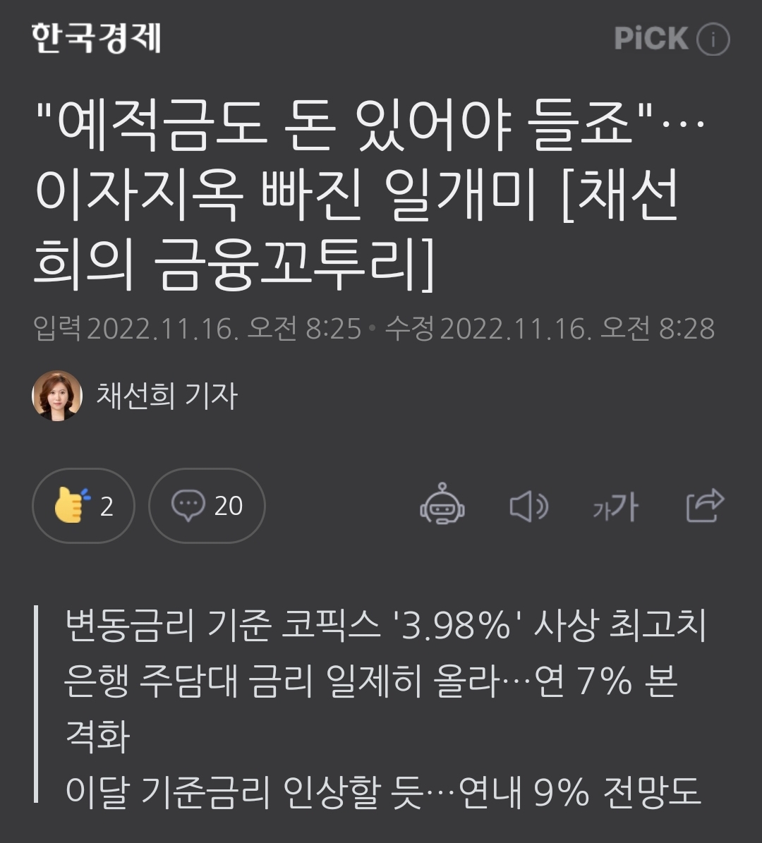 | 1금융권 금리인상에 따른 저축은행사정 기사 하나 (0) | 2022.11.18 |