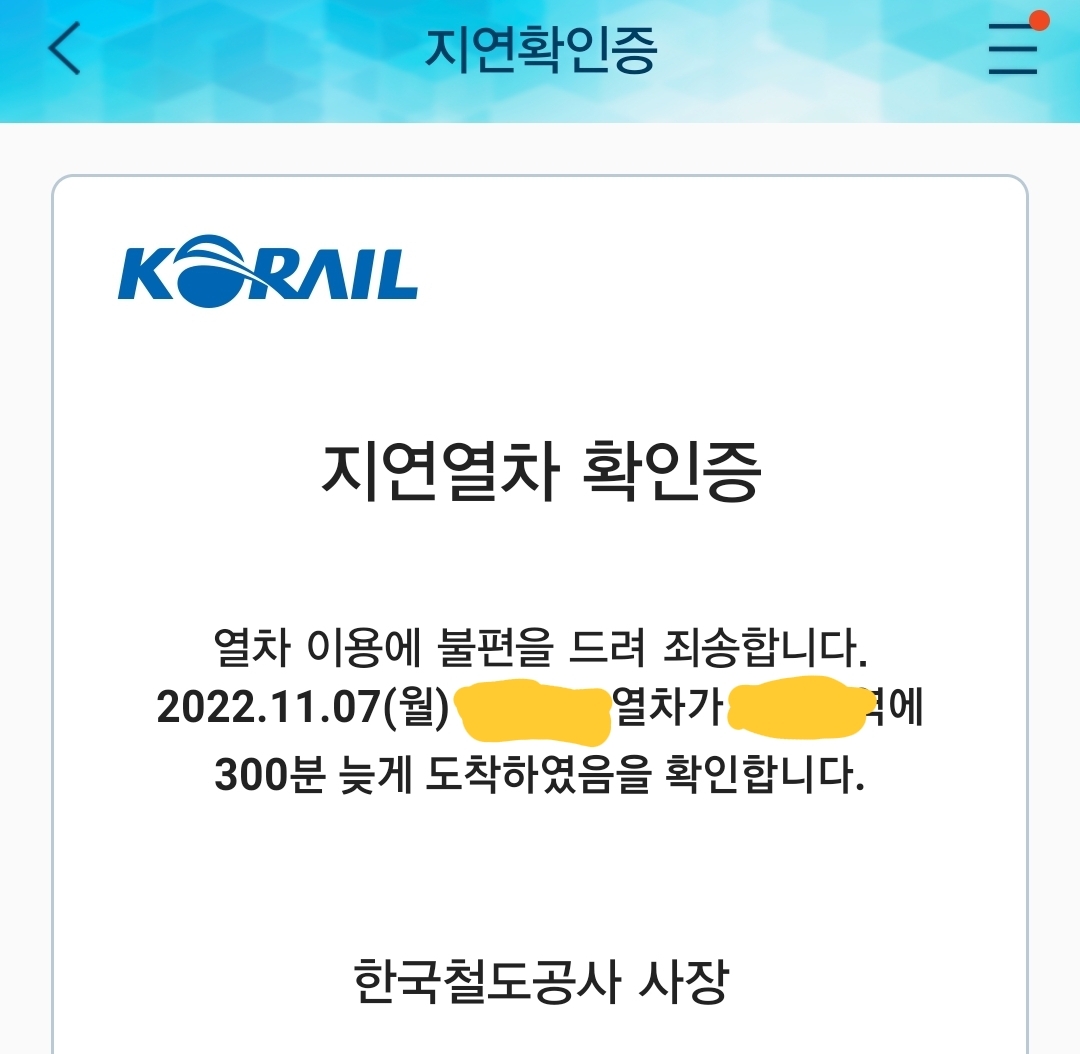 11월 7일 코레일 열차지연사태, 늦게 발차했지만 지연할인쿠폰같은 것이 없었던 이유 본문