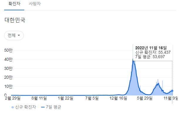 | 코로나19집계(2022.11.18. 0시기준) 확진 +4.9만, 사망 +63명, 중환자실가동률 34% (0) | 2022.11.18 |