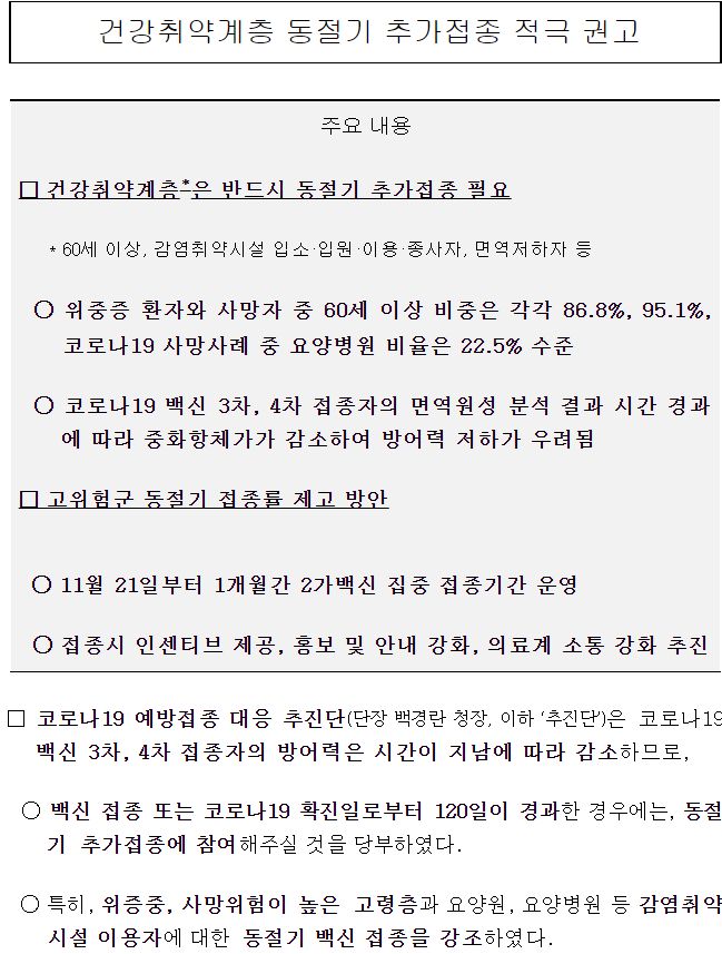 건강취약계층 동절기 추가접종 적극 권고