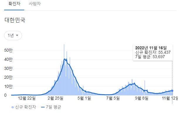 | 코로나19(2022.11.16) 주간 발생 동향(11. 6.∼11. 12.) (0) | 2022.11.17 |
