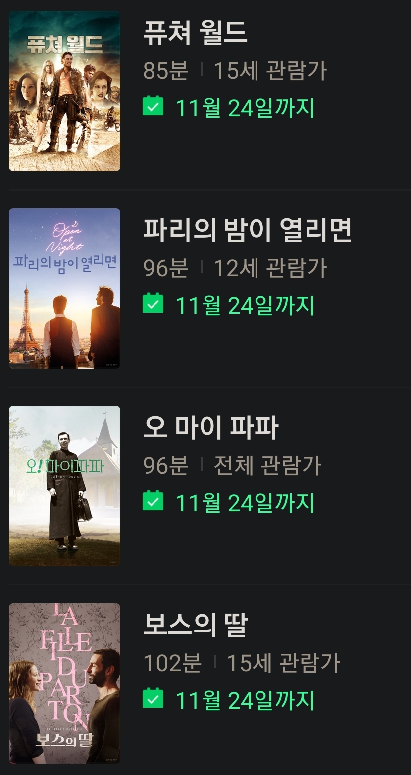 | (네이버시리즈온 무료영화) 퓨처 월드, 파리의 밤이 열리면, 플래시백, 오 마이 파파, 이번 썸은 망했어 등 (0) | 2022.11.11 |