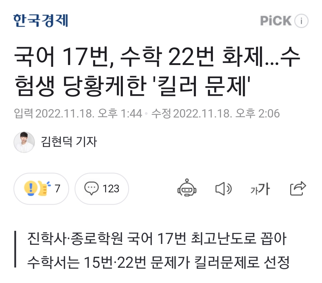 국어 17번, 수학 22번 화제…수험생 당황케한 '킬러 문제'