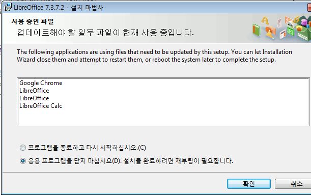 새 버전을 설치하려면 웹브라우저도 꺼야 합니다. 이런 젠장맞을 놈들..