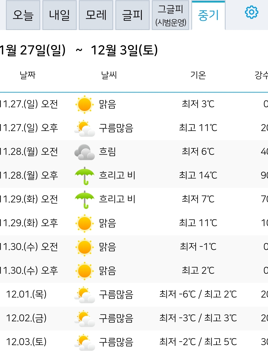 | 12월 초 일기예보 (0) | 2022.11.27 |