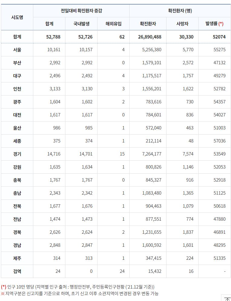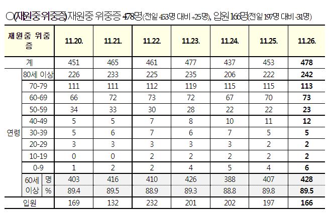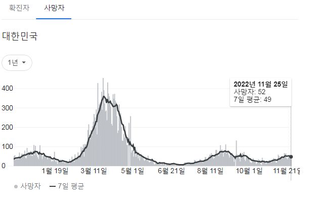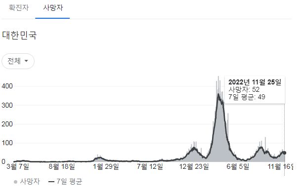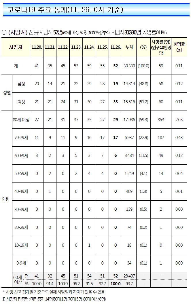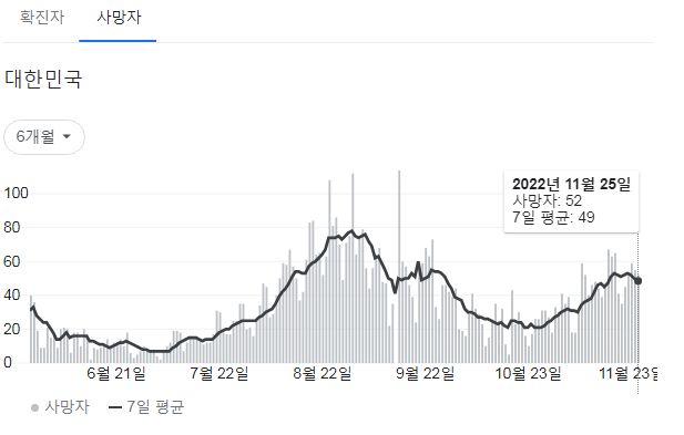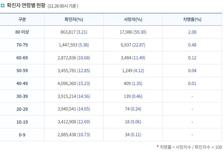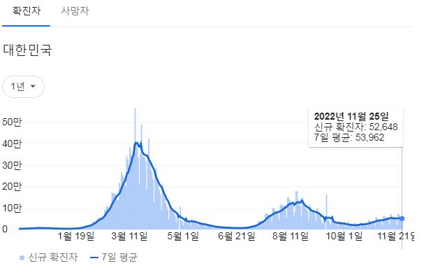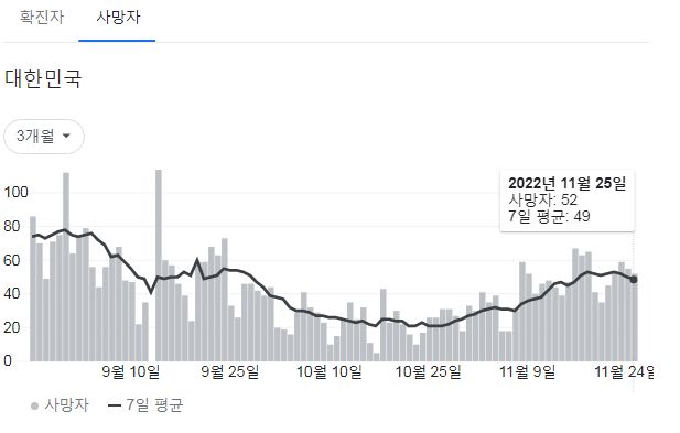 코로나19집계(2022.11.26. 0시기준): 확진 +5.3만, 사망 +52명, 중환자병상가동률 32% 본문