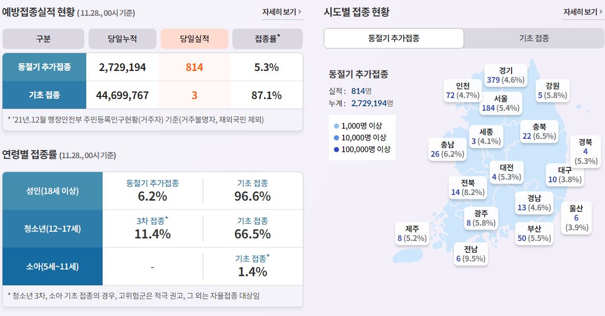 출처는 질병관리청의 홈과 코로나19 예방접종통계페이지, 그리고 구글입니다.