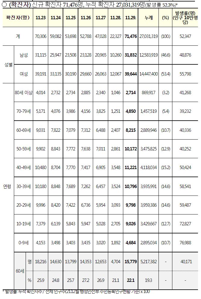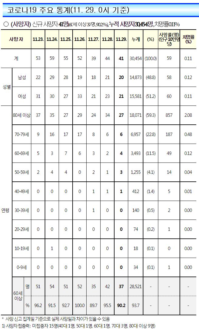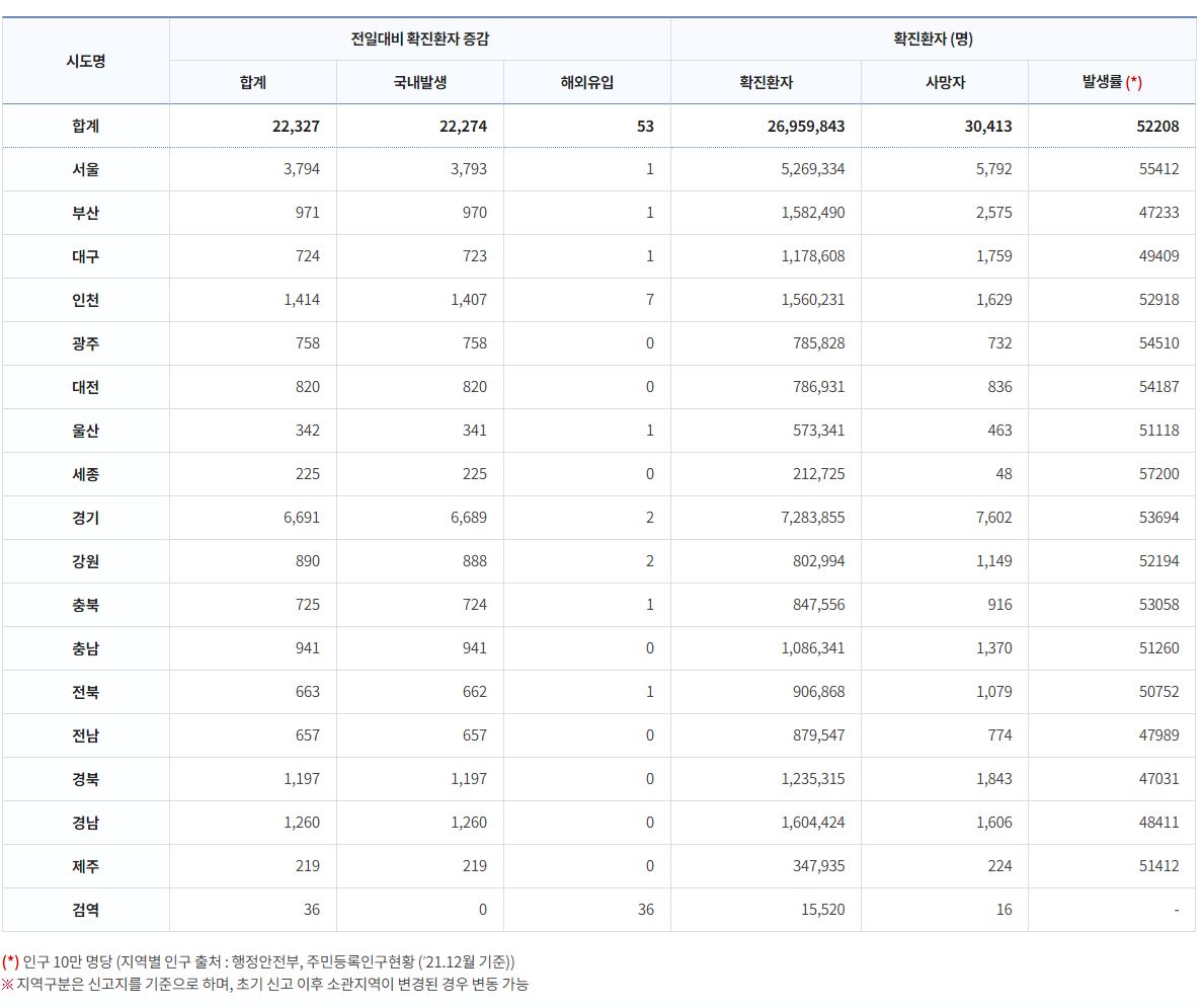 | 코로나19집계(2022.11.29. 0시기준): 확진 +7.1만, 사망 +41명, 중환자병상가동률 33% (0) | 2022.11.29 |
