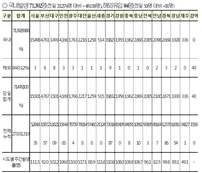 재택치료자수는 아래 표에서 7일간의 신규확진자합계에서 7일간의 신규입원자합계를 빼면 비슷합니다.