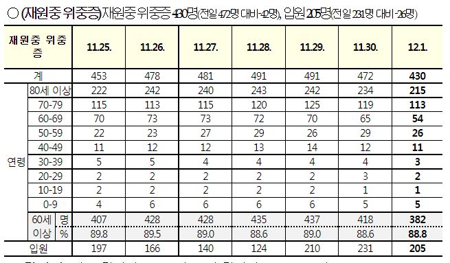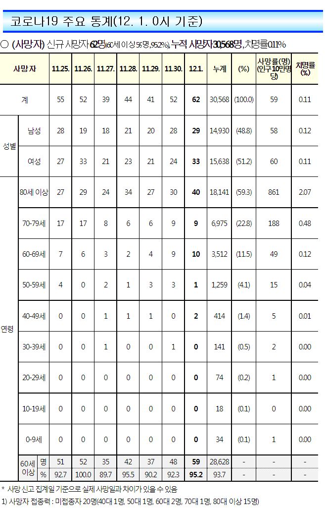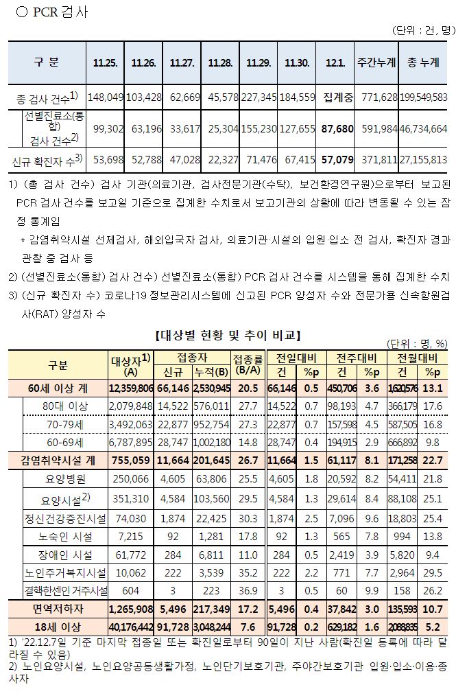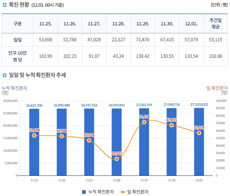 코로나19(2022.12.1. 0시기준) 확진 +5.7만, 사망 +62명, 중환자병상가동률 33% 본문