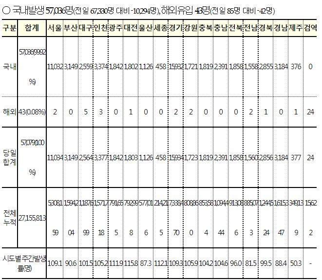 재택치료자수는 아래 표에서 7일간의 신규확진자합계에서 7일간의 신규입원자합계를 빼면 비슷합니다.