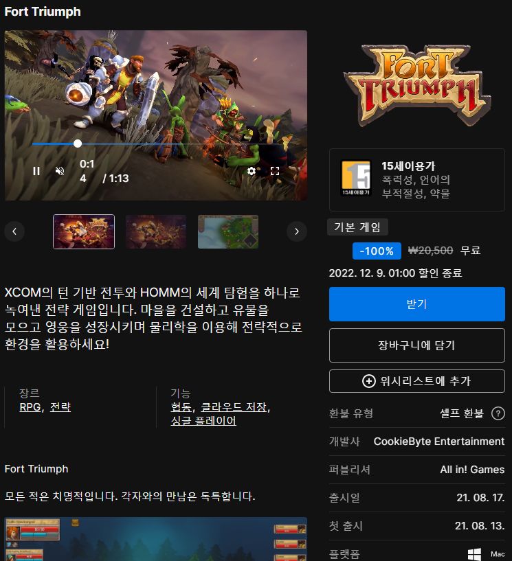 (에픽게임즈 무료게임) Fort Triumph 본문
