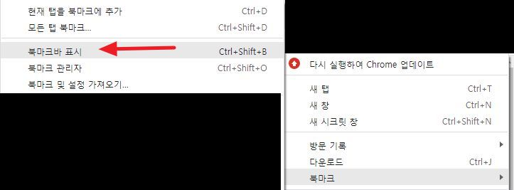 2. 크롬 업데이트를 하면 가끔 북마크줄 표시를 멋대로 꺼버리기.